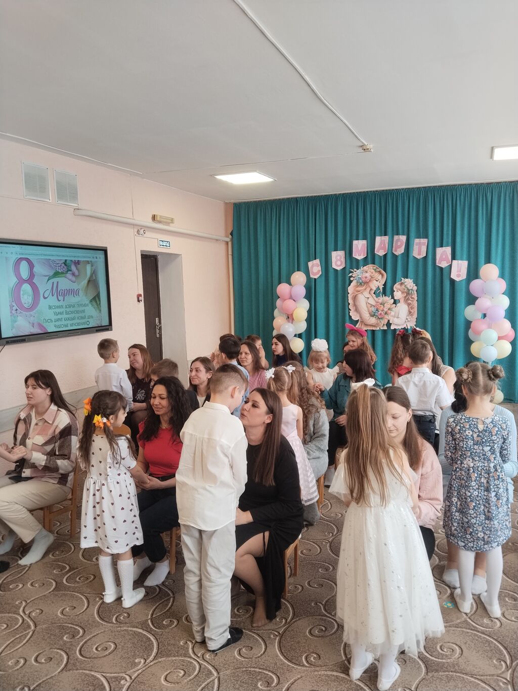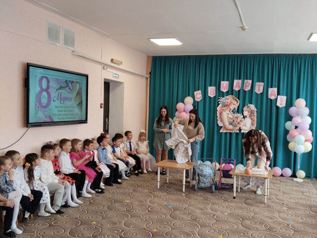 Праздник начался сегодня с трогательных стихов и песен, посвященных мамам, бабушкам и девочкам. Наши маленькие артисты порадовали всех своим талантом и старанием.